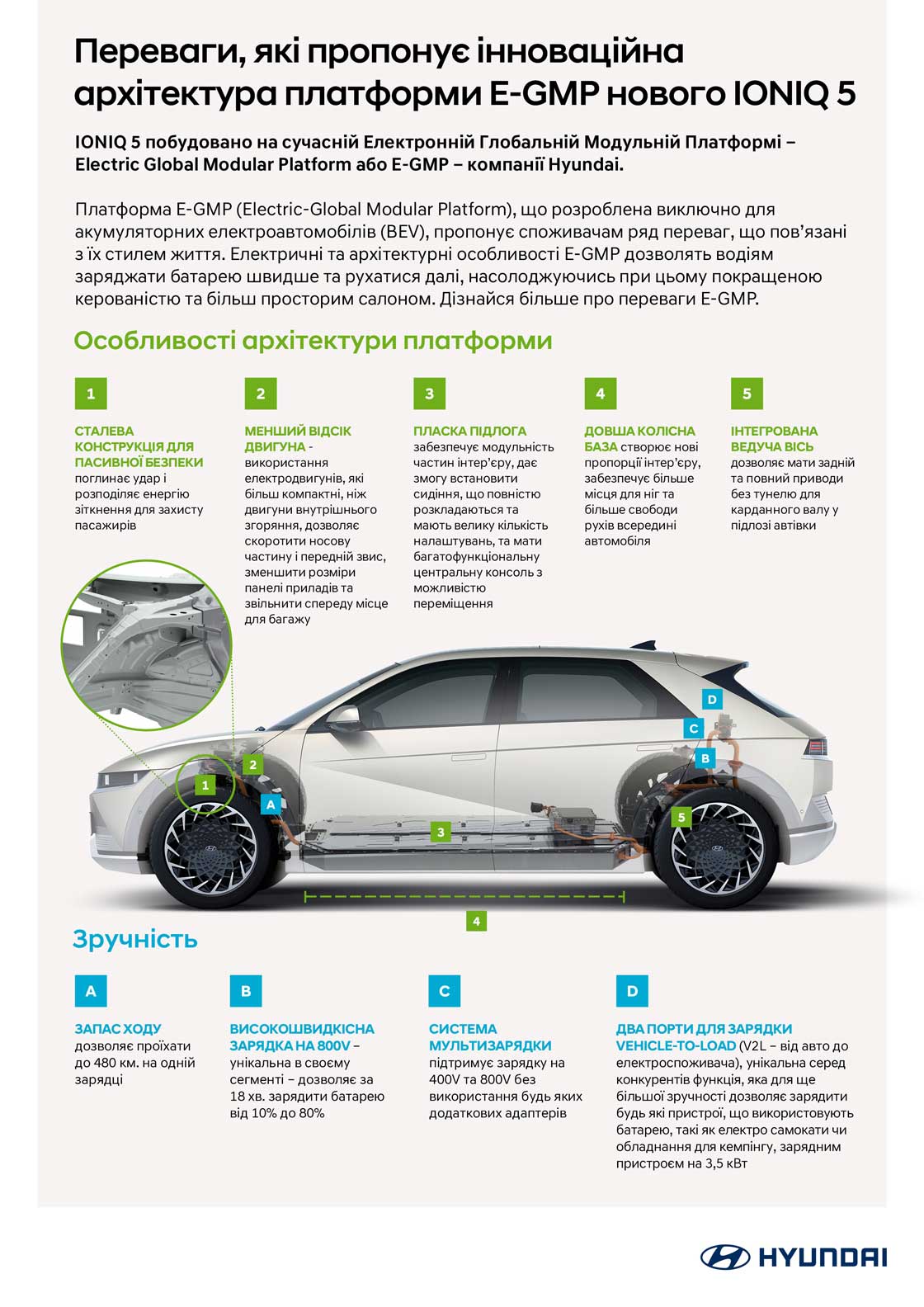 Переваги, які пропонує інноваційна архітектура платформи E-GMP нового IONIQ 5