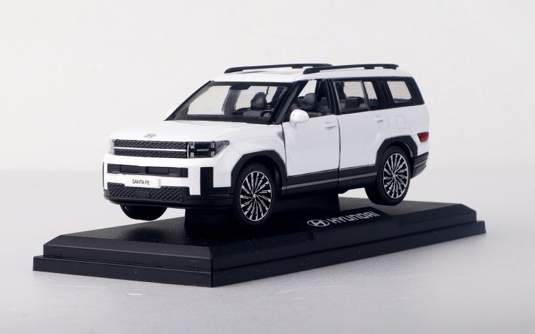 Якісна та оригінальна модель автомобіля Hyundai Santa Fe виконана в масштабі 1:38. Передні двері авто відчиняються. Модель виконана з металу та встановлена на пластикову підставку з логотипом Hyundai. Не є іграшкою для дітей.
